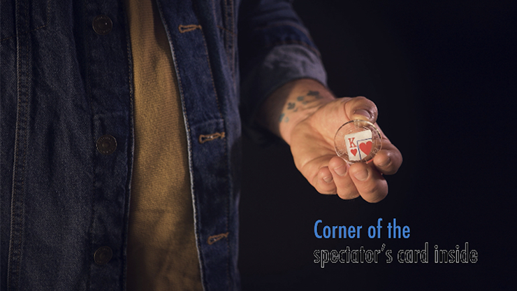 You show a random card and hit the poker chip with the face of this card, the poker chip becomes clear visually and the color of the poker chip is now on the face of the card. Ideal for social media, it's a fast visual effect.